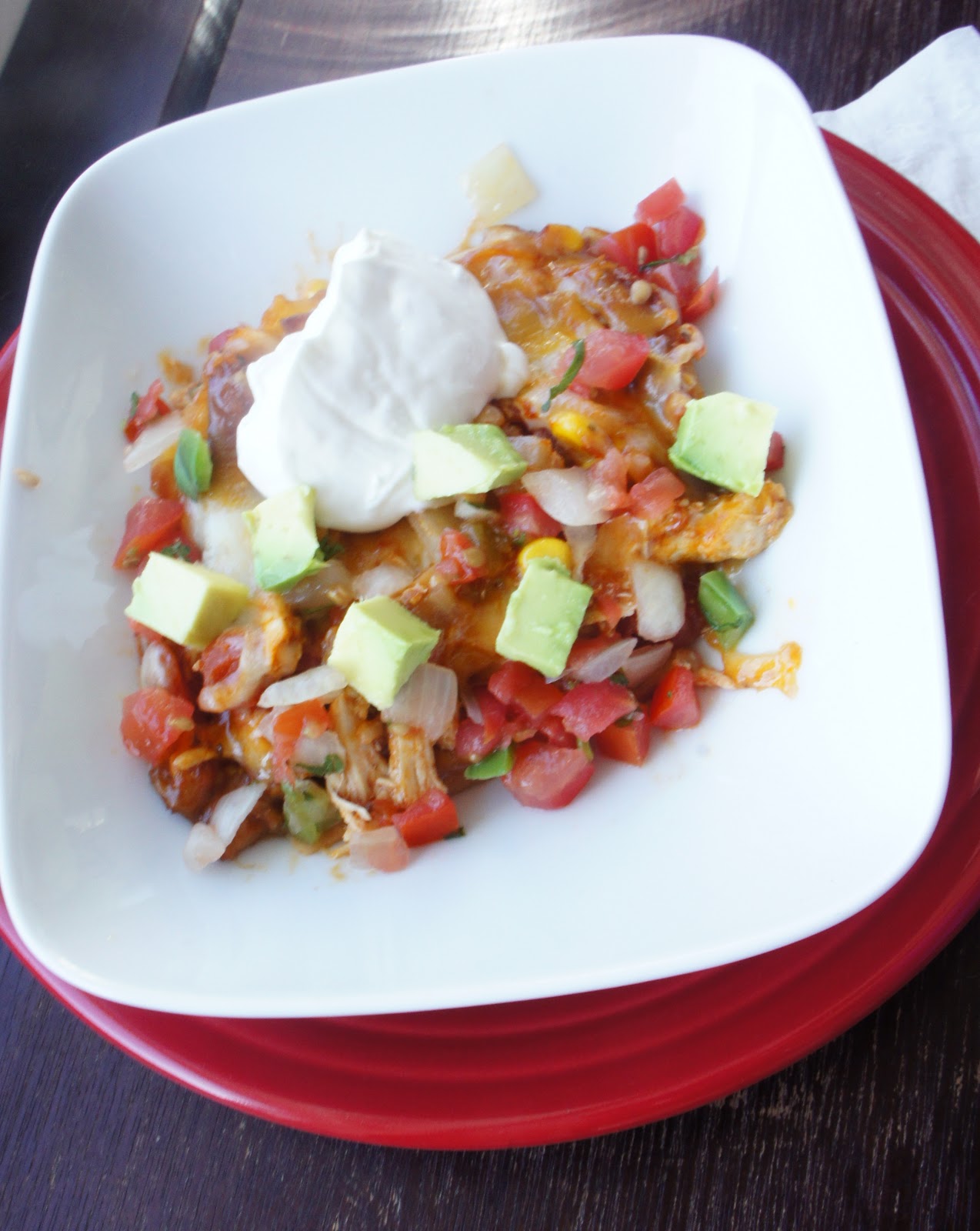 Chilaquiles is known as the traditional hangover food. Typically served at breakfast or brunch and often with eggs. My interpretation is a casserole and includes chicken. This is another dish that you can easily customize to your taste. Vegetarian? Leave out the chicken. Add some beans for extra protein. Toss in those eggs and serve at breakfast time. For garnish I used guacamole, sour cream, and pico de gallo. Have a fresh salad on the side and there is dinner. I fried my tortillas, but you could simplify and use tortilla chips. Of course, don't forget your favorite beverage to wash it down!